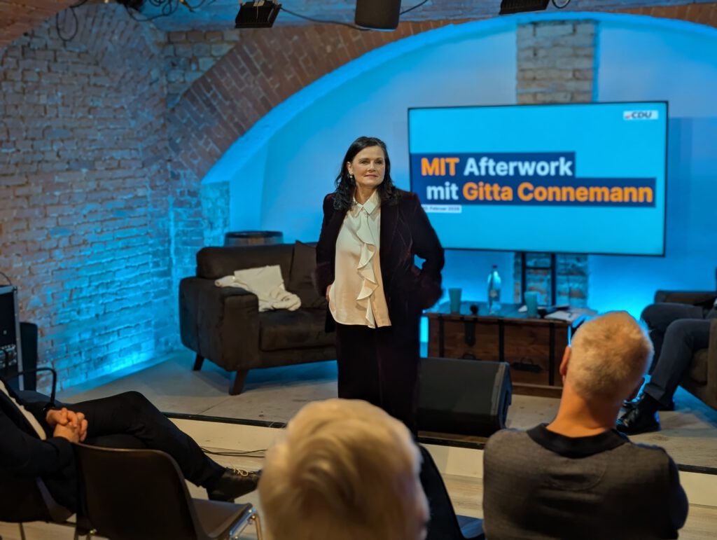 Am 10. Februar 2026 fand im Gewölbekeller von TMPL Media das 8. Afterwork der Mittelstands- und Wirtschaftsunion (MIT) Rostock statt. Als besonderer Gast konnte die Bundesvorsitzende der MIT, Gitta Connemann, MdB, begrüßt werden.